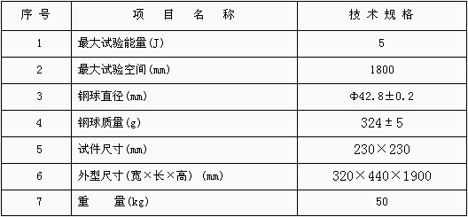 產(chǎn)品概述: MJL-5落球沖擊試驗機(jī)是針對“人造板及飾面人造板進(jìn)行抗沖擊性能測定”研制的,能夠滿足 GB17657-1999《人造板及飾面人造板理化性能試驗方法》,進(jìn)口冷熱沖擊試驗機(jī),進(jìn)行落球沖擊試驗的各項要求, 是人造板各級質(zhì)檢部門和生產(chǎn)企業(yè)的理想測試設(shè)備。 技術(shù)參數(shù):