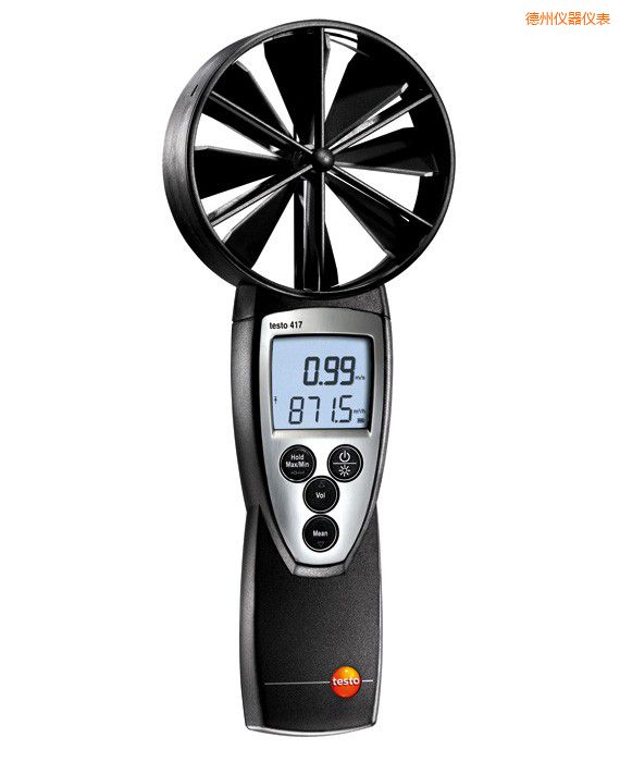 testo 417葉輪風(fēng)速儀 產(chǎn)品介紹:testo 417精密型風(fēng)速儀,配置一體式葉輪風(fēng)速/溫度探頭,真風(fēng)速計在行動,直徑100mm,測量風(fēng)速、風(fēng)量和溫度。直接顯示體積流量。只需輸入管道的截面積,風(fēng)速儀工作原理,即可精確計算出流量。 可以快速切換至當(dāng)前的溫度讀數(shù)。此外,還可以顯示氣流的方向 。儀器帶時間段和多點平均值計算功能,塔吊風(fēng)速儀,計算風(fēng)量、風(fēng)速和溫度的平均值。用戶可選配風(fēng)量罩,超聲風(fēng)速計,有助于更好地檢測格柵出風(fēng)口和風(fēng)閥處的風(fēng)量。 儀器可以顯示最大值/最小值。使用保持鍵,熱線風(fēng)速儀價格,可以保持當(dāng)前讀數(shù)。 testo 417葉輪風(fēng)速儀 優(yōu)點:· 識別氣流的流向· 測量溫度、風(fēng)速和風(fēng)量 · 時間段/多點平均值計算 · 顯示最大值/最小值 · 保持鍵,手持風(fēng)速儀,保持讀數(shù) · 顯示屏帶背光燈 · 自動關(guān)機功能 · 100mm直徑的一體式葉輪 testo 417葉輪風(fēng)速儀 附件 - testo 417