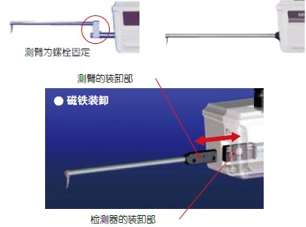 • 測臂安裝為一鍵式裝卸 (此項專利權在日本受理中)