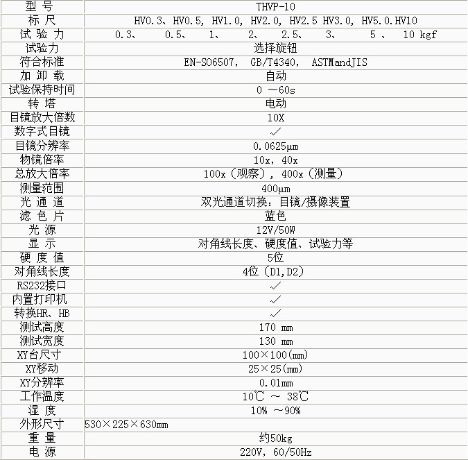 產(chǎn)品概述: THVP-10大屏數(shù)顯自動(dòng)轉(zhuǎn)塔維氏系列硬度計(jì)是光機(jī)電一體化的高新技術(shù)產(chǎn)品,維氏硬度計(jì)時(shí)代,顯示屏使用大的LCD屏幕,維氏硬度計(jì)單位,它造型新穎、美觀,維氏硬度計(jì)操作,具有良好的直觀性、可 操作性和可靠性,維氏硬度計(jì)載荷選擇,是測(cè)試維氏硬度的理想產(chǎn)品。該機(jī)的壓頭和物鏡之間的轉(zhuǎn)換采用自動(dòng)切換裝置。適用于測(cè)量微小、薄形試件、表面滲鍍處理后的零件和對(duì)瑪瑙、玻 璃、陶瓷等脆性材料的顯微和努氏硬度的測(cè)定 以及涂層、表面覆層、層壓金屬、熱處理碳化層和淬火硬化層的深度與硬度梯度的測(cè)定。是科研機(jī)構(gòu)、工廠及質(zhì)檢部 門進(jìn)行研究和檢測(cè)的理想的硬度測(cè)試儀器。 功能特點(diǎn): 1、硬度計(jì)在機(jī)械上采用精密的結(jié)構(gòu)設(shè)計(jì),標(biāo)譽(yù) 維氏硬度計(jì),在光學(xué)上采用高倍率物鏡和數(shù)顯式測(cè)微目鏡,測(cè)量光源采用冷光源等先進(jìn)技術(shù)。 2、采用閉環(huán)式加載控制系統(tǒng),維氏硬度計(jì)操作流程,使試驗(yàn)力精度提高,dhv 1000維氏硬度計(jì),示值的重復(fù)性及穩(wěn)定性佳。該系統(tǒng)用在維氏硬度計(jì)上,維氏硬度計(jì)日常點(diǎn)檢表,在國(guó)內(nèi)屬首創(chuàng)。 3、 操作由面板上的觸摸鍵輸入,維氏硬度計(jì)型號(hào),能預(yù)置試驗(yàn)力保荷時(shí)間、調(diào)節(jié)測(cè)量光源的強(qiáng)弱、選擇維氏或努氏測(cè)試模式、硬度轉(zhuǎn)換標(biāo)尺、文件號(hào)與儲(chǔ)存等。并能在屏幕 上顯示測(cè)量壓痕長(zhǎng)度、硬度值、測(cè)量次數(shù)和年、月、日及時(shí)間等,試驗(yàn)結(jié)果和數(shù)據(jù)處理,并通過(guò)打印機(jī)輸出,維氏硬度計(jì)說(shuō)明書(shū),還能通過(guò)RS232接口與計(jì)算機(jī)連接。 4、硬度計(jì)還可根據(jù)用戶特殊需求配置CCD裝置、視屏裝置和攝像裝置 技術(shù)參數(shù):