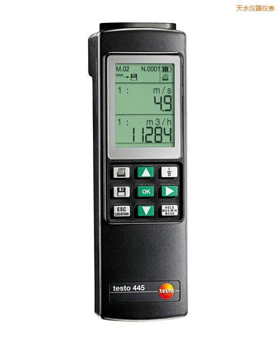 testo 445多功能測量儀,可測量溫度、相對濕度、露點、絕對濕度、濕度、熱焓及各種風速(管道內、管道出口或散熱器)、風量、壓力和室內空氣質量。