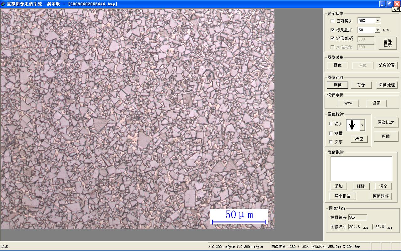 在金相圖像系統(tǒng)中,常常要進(jìn)行圖像定倍。但傳統(tǒng)的定倍軟件,,只有“定倍打印”的單一功能,且打印出的圖片清晰度差,不能滿足金相圖像的尤其是高檔金相圖像用戶對(duì)打印分辨率的要求。