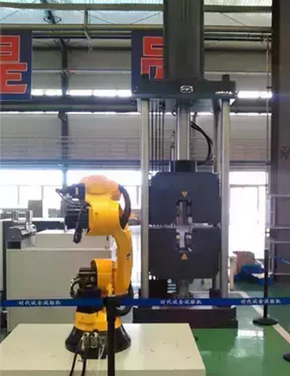 2000kN全自動微機(jī)控制電液伺服拉力試驗機(jī)是目前國內(nèi)最為先進(jìn)的自動化試驗系統(tǒng)應(yīng)用了80kg六自由度機(jī)器人、平推夾具、全自動引伸計、尺寸測量平臺等,各部分全部由我公司自主研發(fā)。在整機(jī)測控系統(tǒng)的協(xié)調(diào)控制下實現(xiàn)試樣錄入與管理自動送料、測量試樣尺寸、裝夾試樣、自動完成拉伸試驗自動測量控制各種信號試驗數(shù)據(jù)自動分析及上傳自動檢測與處理各種狀態(tài)及異常從而實現(xiàn)中厚板試樣的無人值守批量全自動試驗?刹婚g斷、高精度地完成批量試樣的材料力學(xué)性能測試。