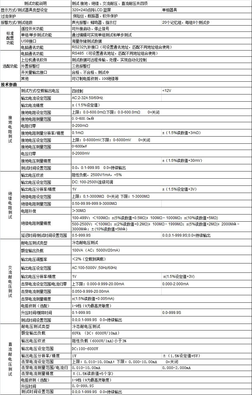 功能特點: 1. 緊跟新標(biāo)準(zhǔn)要求,安規(guī)綜合測試,滿足各行業(yè)標(biāo)準(zhǔn)檢測:接地電阻測試電流最大到32A,電器安全性能綜合測試儀,絕緣測試電壓最大到2500V; 2. 集成多種測試功能,安全性綜合測試儀,減少產(chǎn)線操作人員:測試系統(tǒng)集成了交流耐壓、直流耐壓、絕緣電阻、接地電阻等安全性能綜合測試,安全性能綜合測試儀,一個工位,安規(guī)綜合測試儀廠家,一鍵啟動,機(jī)械電氣設(shè)備安全特性綜合測試儀,快速完成全功能檢測; 3. 20個測試組,安規(guī)自動綜合測試儀,可步組編程:適用于混合高效產(chǎn)線; 4. 測試速度快,安規(guī)綜合測試臺,四項功能測試2.5s完成; 5. 選配USB接口,安全綜合測試儀,實現(xiàn)測試結(jié)果海量存儲;