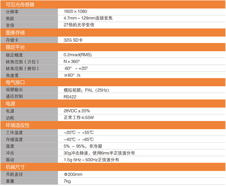 產(chǎn)品特點(diǎn) 體積小重量輕 直徑200mm,醫(yī)用紅外熱像儀的用途,重量7kg,大大降低飛機(jī)有效負(fù)荷 連續(xù)變焦高清可見(jiàn)光攝像機(jī) 配置27倍連續(xù)變焦1920×1080P的高清可見(jiàn)光攝像機(jī),成像質(zhì) 量高,可呈現(xiàn)高清場(chǎng)景,便于精確定位故障 跟蹤精度高穩(wěn)定性好 采用陀螺穩(wěn)定平臺(tái),可有效隔離運(yùn)動(dòng)載體的各種振動(dòng)、起伏、 顛簸,科研型紅外熱像儀,消除圖像的模糊和晃動(dòng) 視頻實(shí)時(shí)回傳 高空視頻可實(shí)時(shí)回傳至地面指揮中心,紅外熱像儀去哪買好,提高巡線效率 可拍照錄像 配置32G內(nèi)存卡,礦用紅外熱像儀,可對(duì)觀測(cè)點(diǎn)拍照錄像,便于地面對(duì)故障進(jìn)行分析